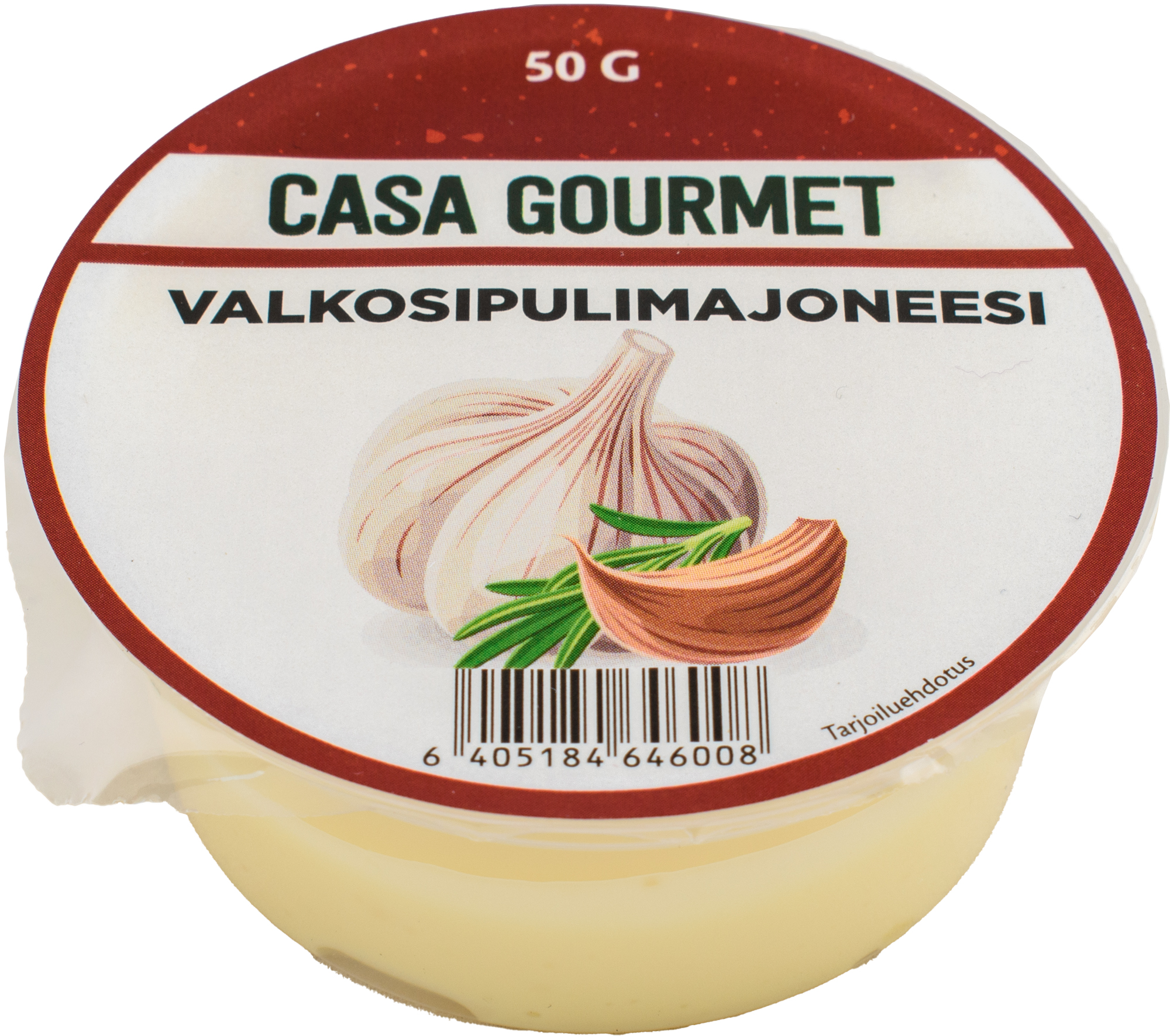 Ingredients: Mayonnaise (rapeseed oil, water, EGG YOLK 2.5%, vinegar, salt, sugar, lemon juice (from concentrate), maltodextrin, flavoring, preservative: E202, antioxidant: E385), garlic 3.0%, water, preservative: E202.