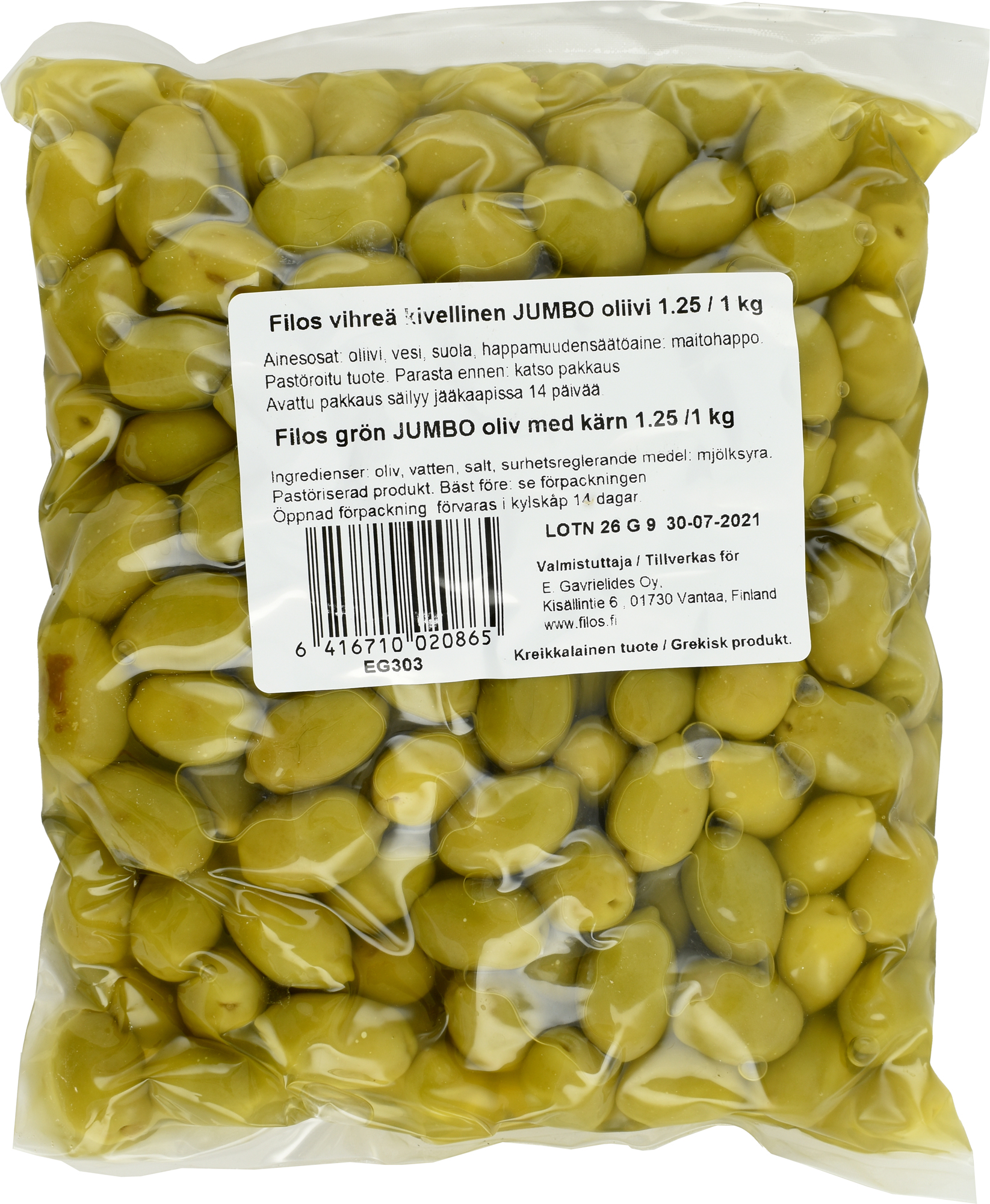 Ingredients: Green olive, water, salt, acidity regulator: lactic acid.