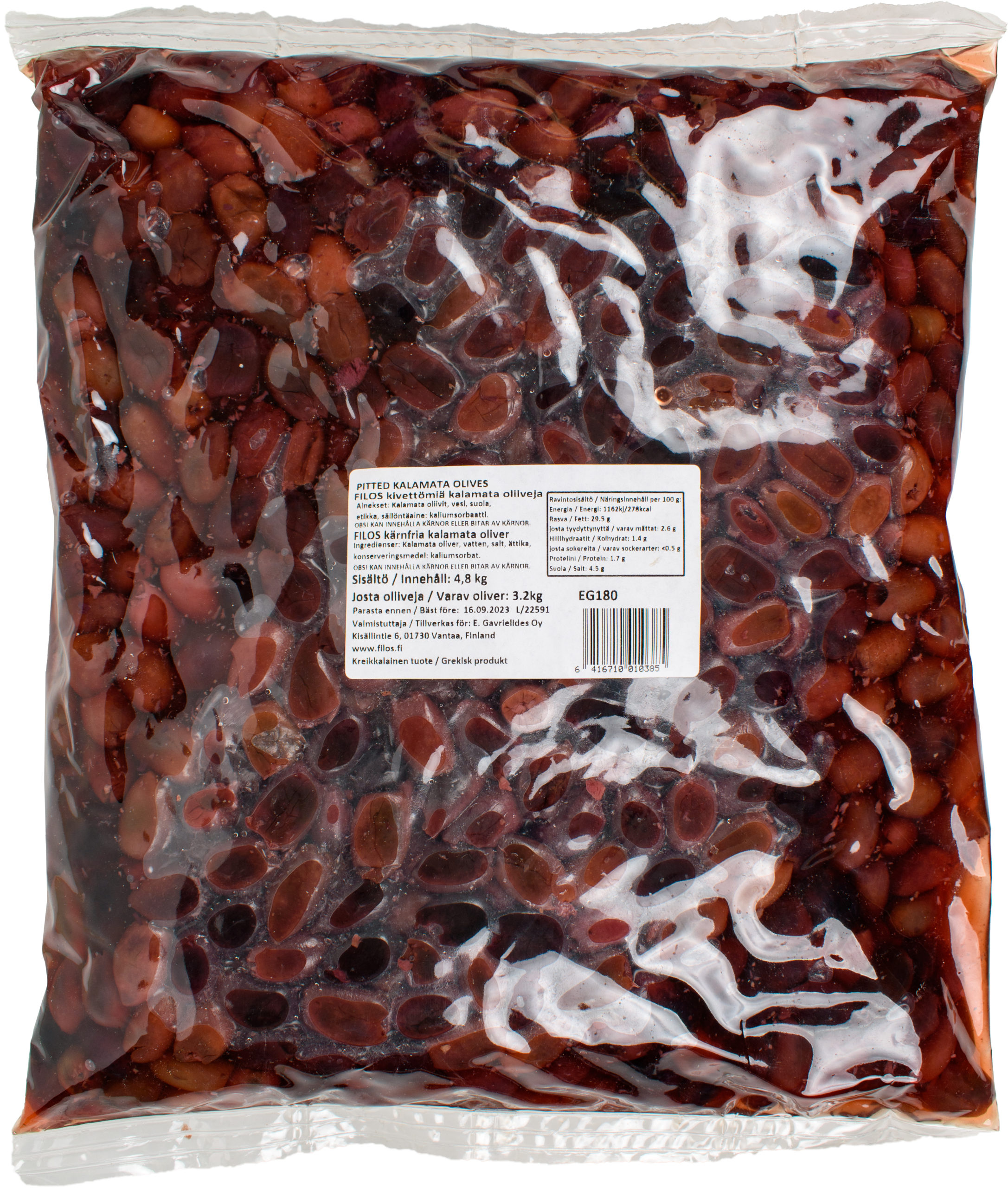 Filos pitted Kalamata olive in pl bag 4,8/3,2kg