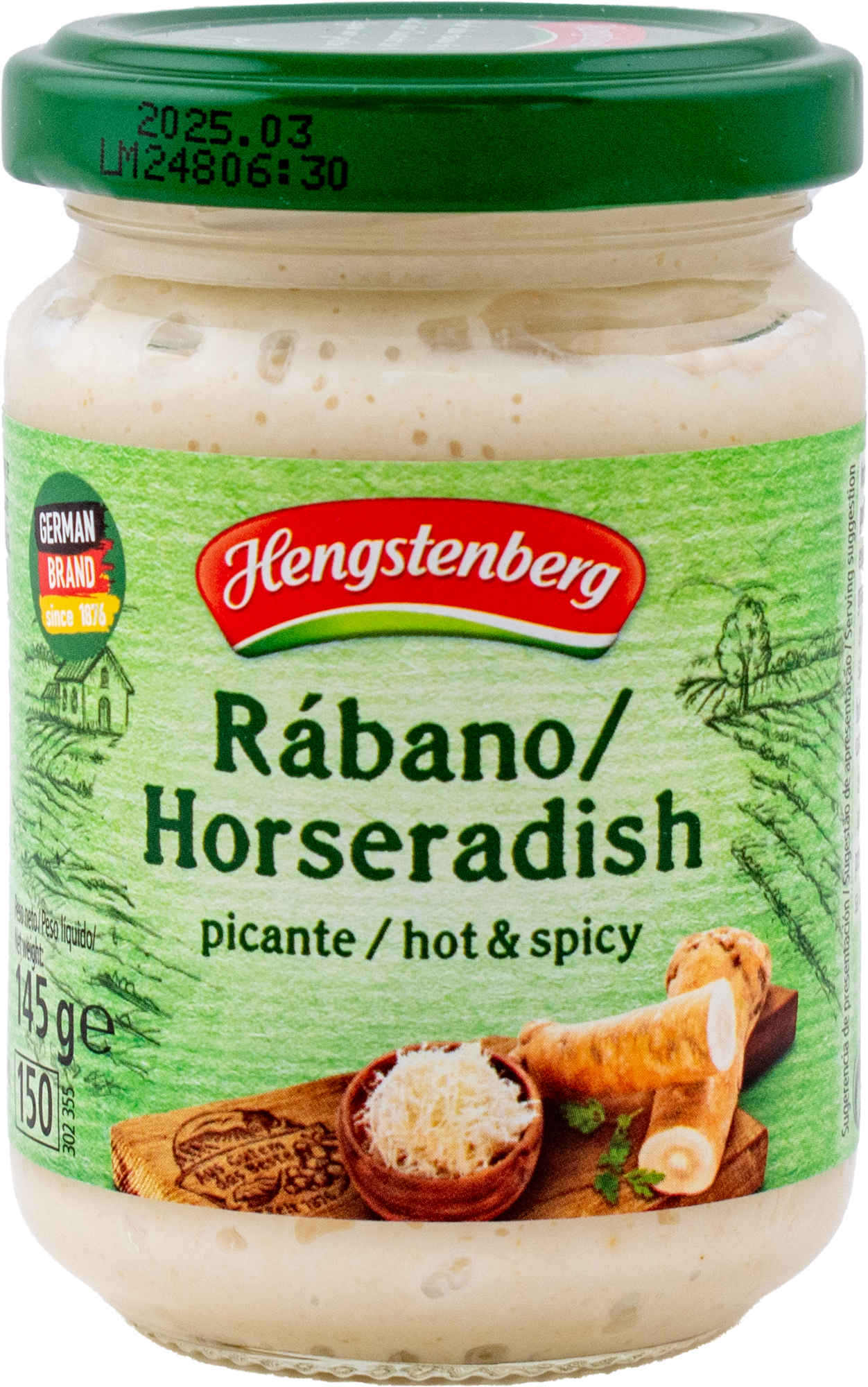 Ingredients: Horseradish (52%), water, spirit vinegar, rapeseed oil, sugar, salt, starch, WHEY SOLIDS (MILK), stabilizer: xanthan gum, acidifier: citric acid, antioxidant: SODIUM METABISULFITE, natural flavor.