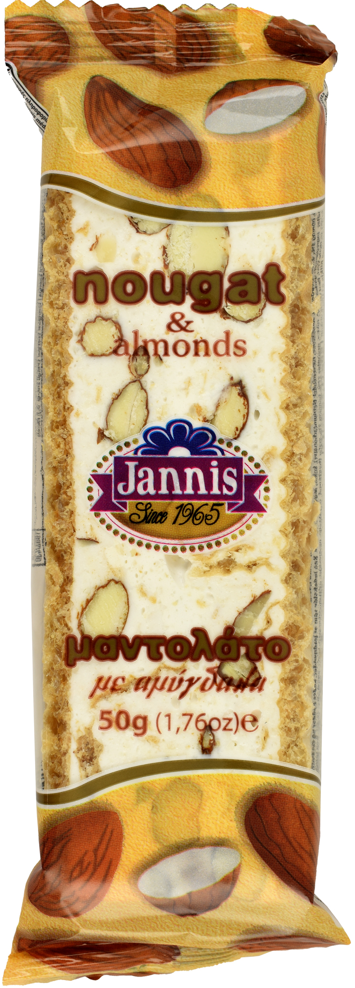 Ingredients: Glucose syrup, sugar, ALMONDS (27%), waffer (WHEAT flour, raising agent: sodium carbonate, vanilla, salt), honey, coconut, EGG WHITE POWDER, vanilla. May contain traces of SESAME SEEDS, PEANUTS and other TREE NUTS.