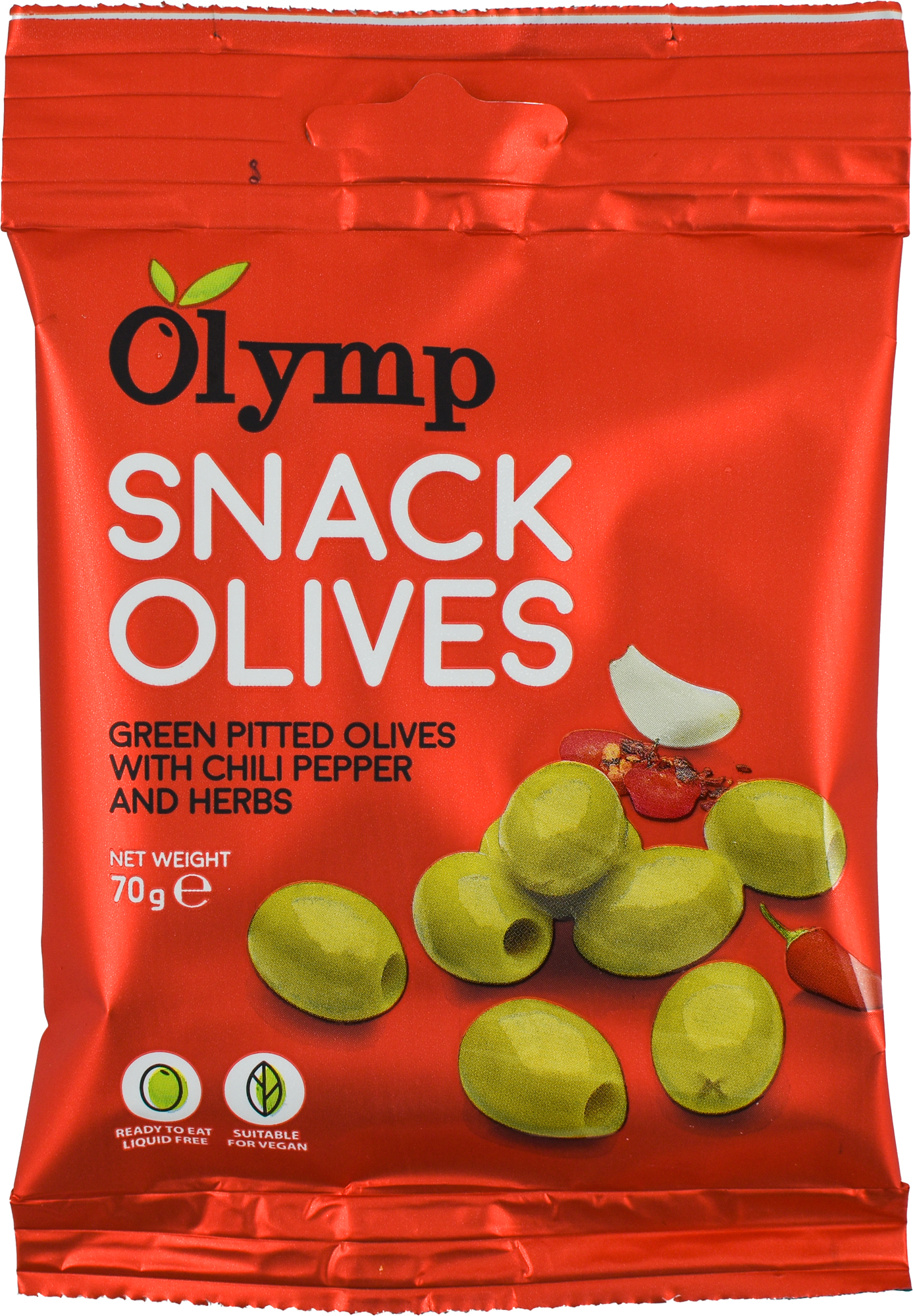 Ingredients: Green pitted olives 96,3% (olives, salt, acidity regulator: citric acid, antioxidant: ascorbic acid), sunflower oil, garlic, chili pepper 0,3%, herbs 0,3%, extra virgin olive oil, preservative: sorbic acid. The product may contain pits or pit fragments.