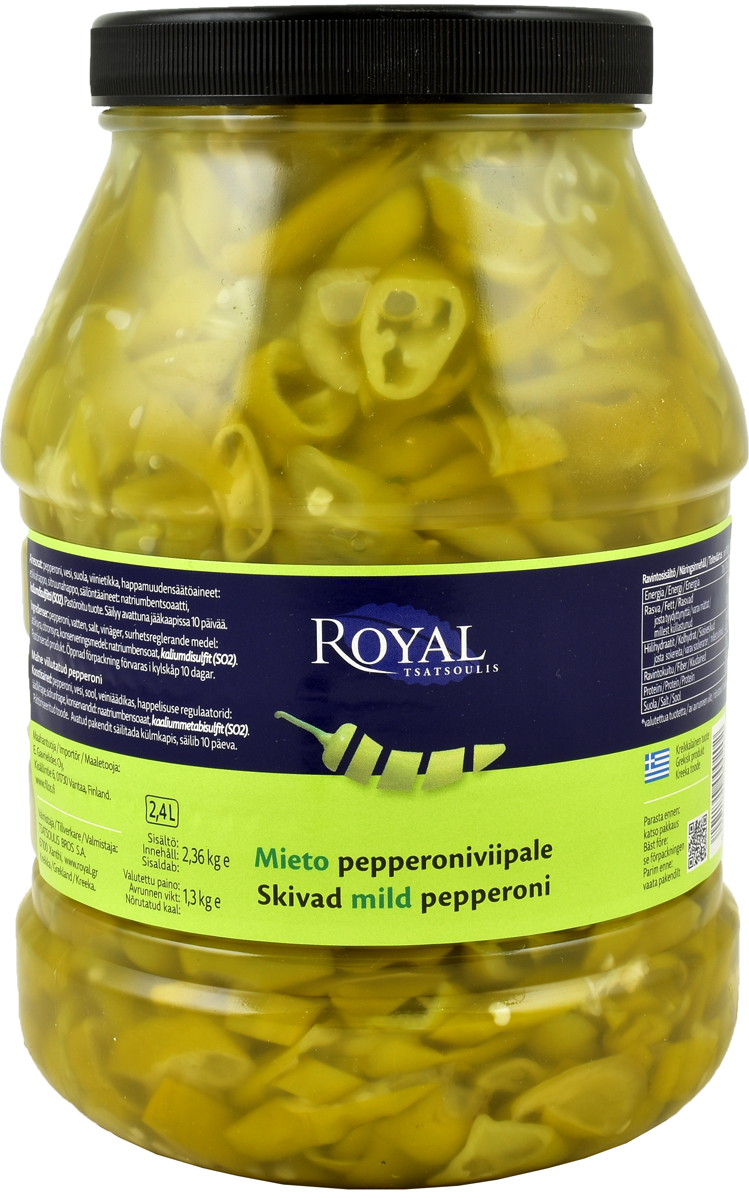 Ingredients: Green pepper, water, salt, vinegar, acidity regulator: acetic acid, preservatives: sodium benzoate, POTASSIUM METABISULPHITE.