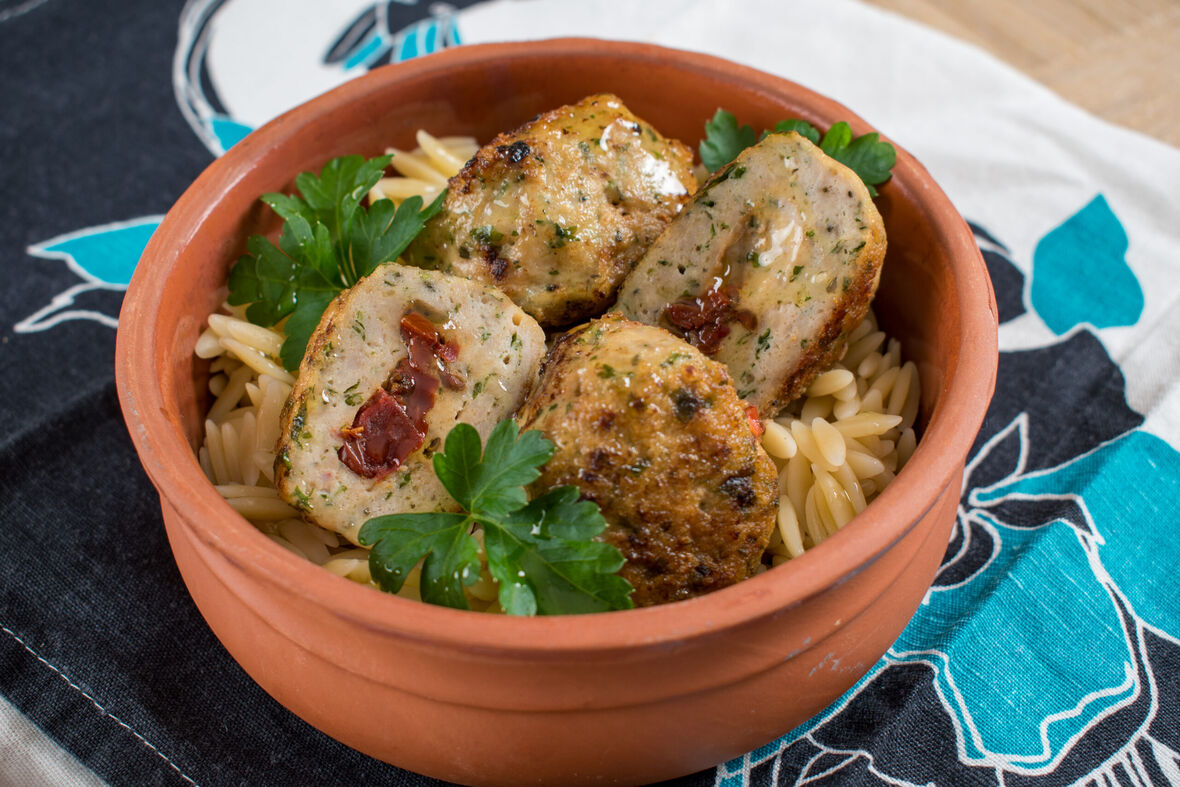 Broileripyörykät aurinkokuivattu tomaattitäytteellä
