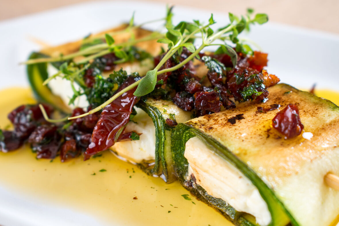 Fetatäytteiset kesäkurpitsarullat aurinkokuivatulla tomaatilla