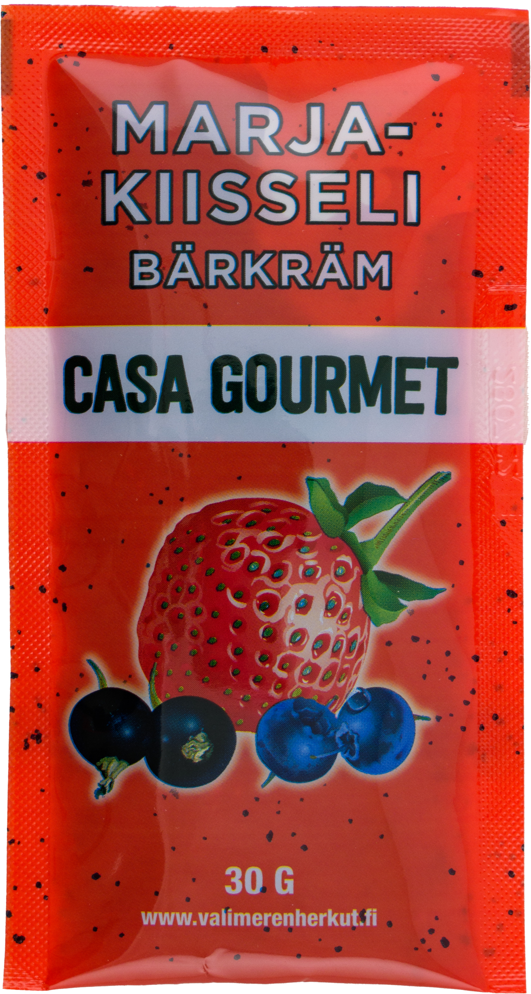 Casa Gourmet marjakiisselissä on mansikkaa, mustaherukkaa ja mustikkaa sekoitettuna rypäleistä ja marjoista tehtyyn mehutiivisteeseen. Koostumukseltaan juokseva kiisseli on helppo kaataa puurojen, jogurttien ja muiden välipalojen ja jälkiruokien päälle. 30 g annospussiin pakattu kiisseli täyttää aamiaispöytien ja Take Away -annosten hygieniavaatimukset. Avaamaton pakkaus säilyy huoneenlämmössä, ja se aukeaa repäisemällä.