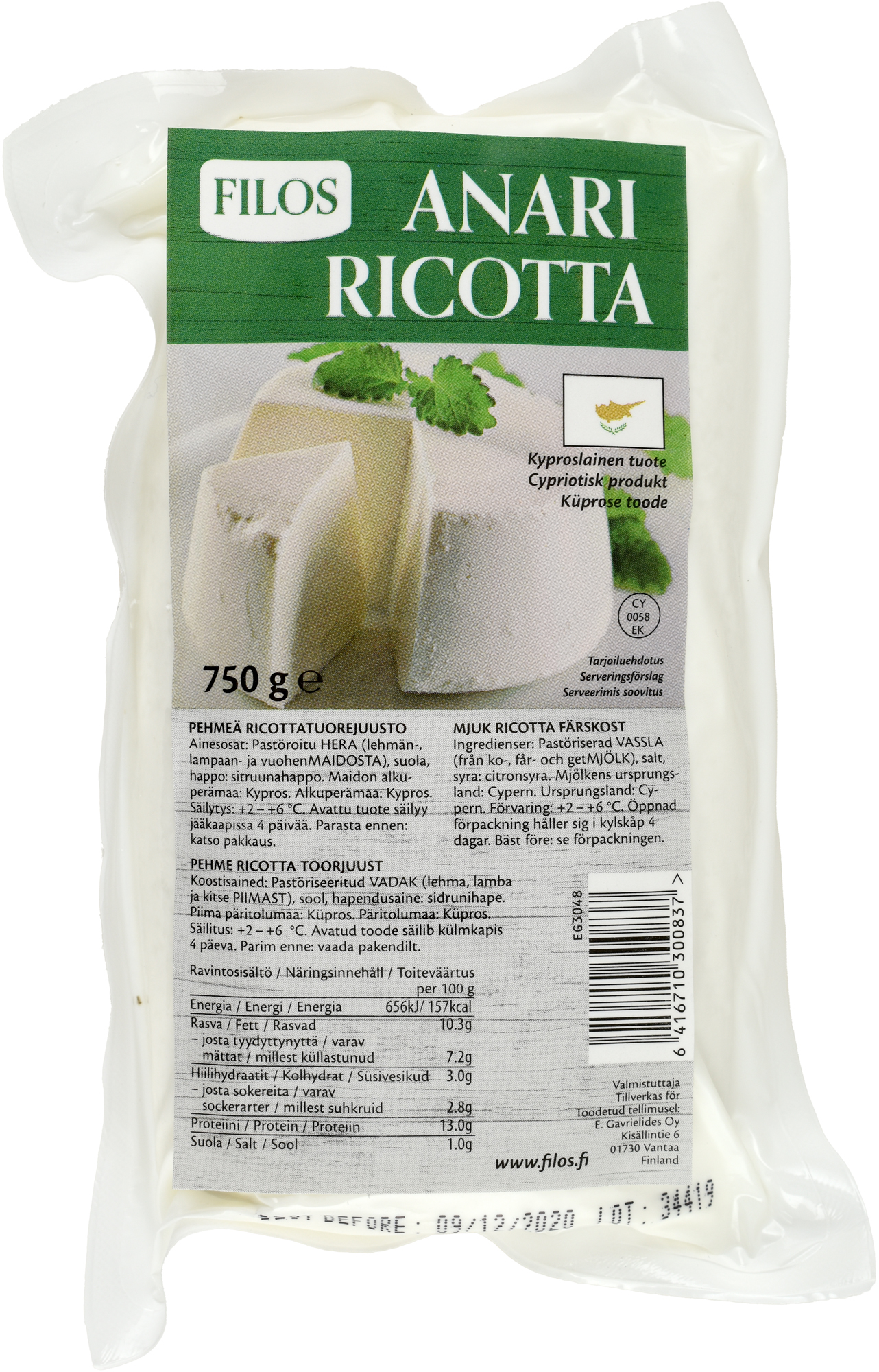 Anari on lehmän-, lampaan- ja vuohenmaidosta valmistettu pehmeärakenteinen herajuusto, joka toimii erinomaisesti ricottan tapaan sekä suolaisissa että makeissa ruokalajeissa. Soveltuu monipuolisesti käytettäväksi pastoihin, piirakoihin, pizzoihin, salaatteihin ja jälkiruokiin. Pakattu runsaaseen 750 g vakuumipussiin – kätevä ja kustannustehokas valinta ammattikeittiöön.