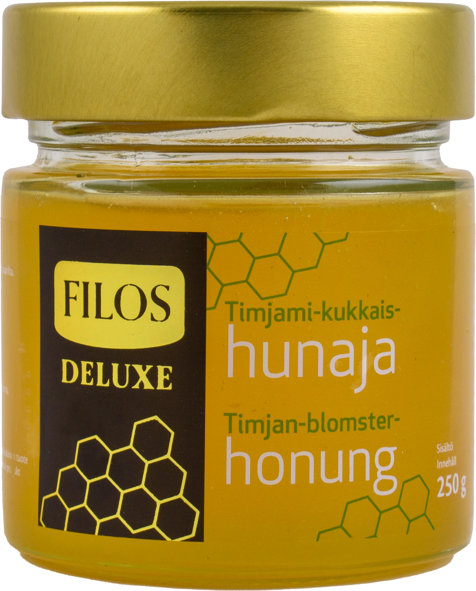 100% kreikkalainen timjami-kukkaishunaja on kerätty Egeanmeren saarilta. Saarilla kasvava timjami antaa hunajalle hienostuneen, aromikkaan maun, jota villikukkien aromit täydentävät.
