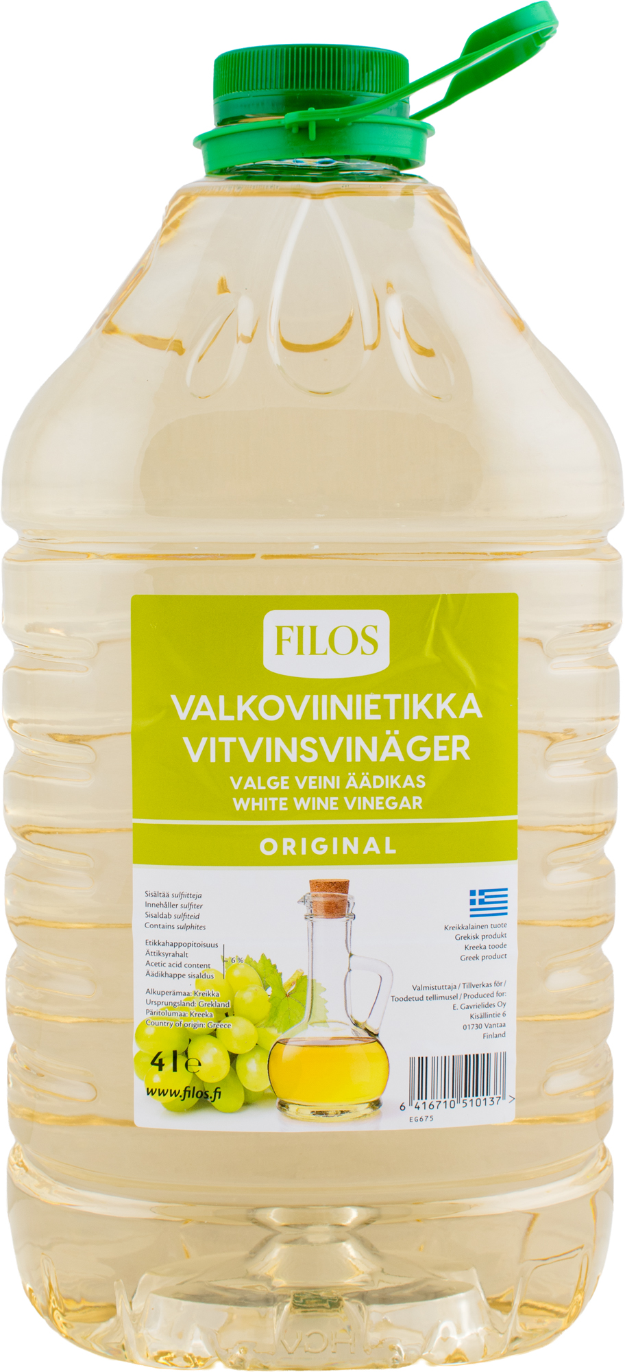 Perinteinen kreikkalainen viinietikka suoraan Välimeren keittiöstä. Valkoviinietikalla marinoit lihat, kasvikset ja kalat, ja maustat kastikkeet. Filos raikkaasta valkoviinietikasta valmistat helposti esimerkiksi salaatinkastikkeen lisäämällä siihen oliiviöljyä, suolaa ja pippuria.