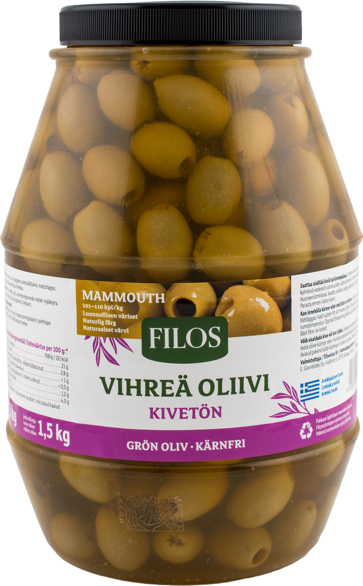 Filos vihreä oliivi kivetön 3/1,5kg mammouth