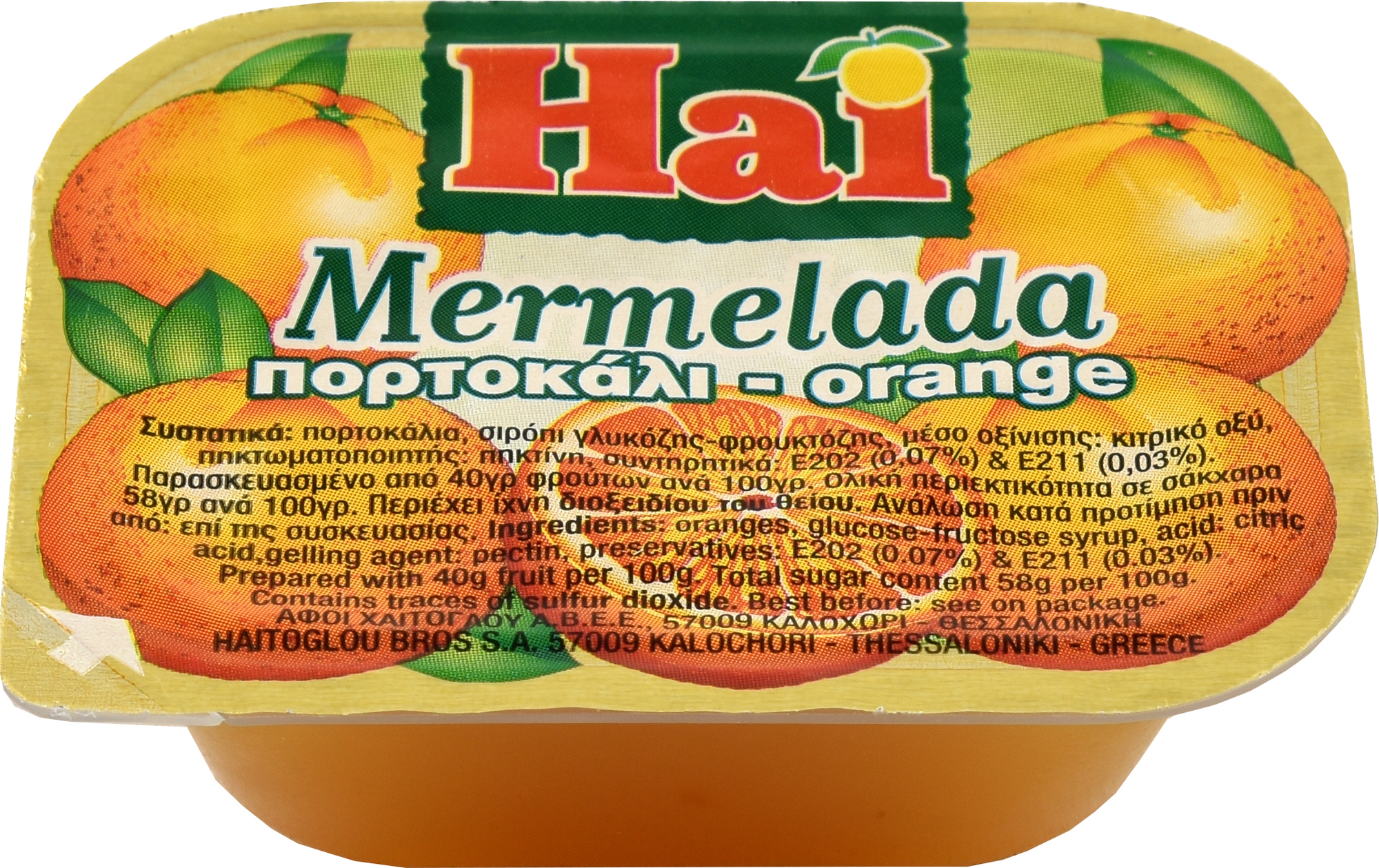 Ainesosat: Appelsiini (45%), glukoosi- fruktoosi siirappi, hyytelöimisaine: pektiini, happamuudensäätöaine: sitruunahappo, säilöntäaineet: natriumbentsoaatti, kaliumsorbaatti. Sisältää jäämiä RIKKIDIOKSIDISTA.
