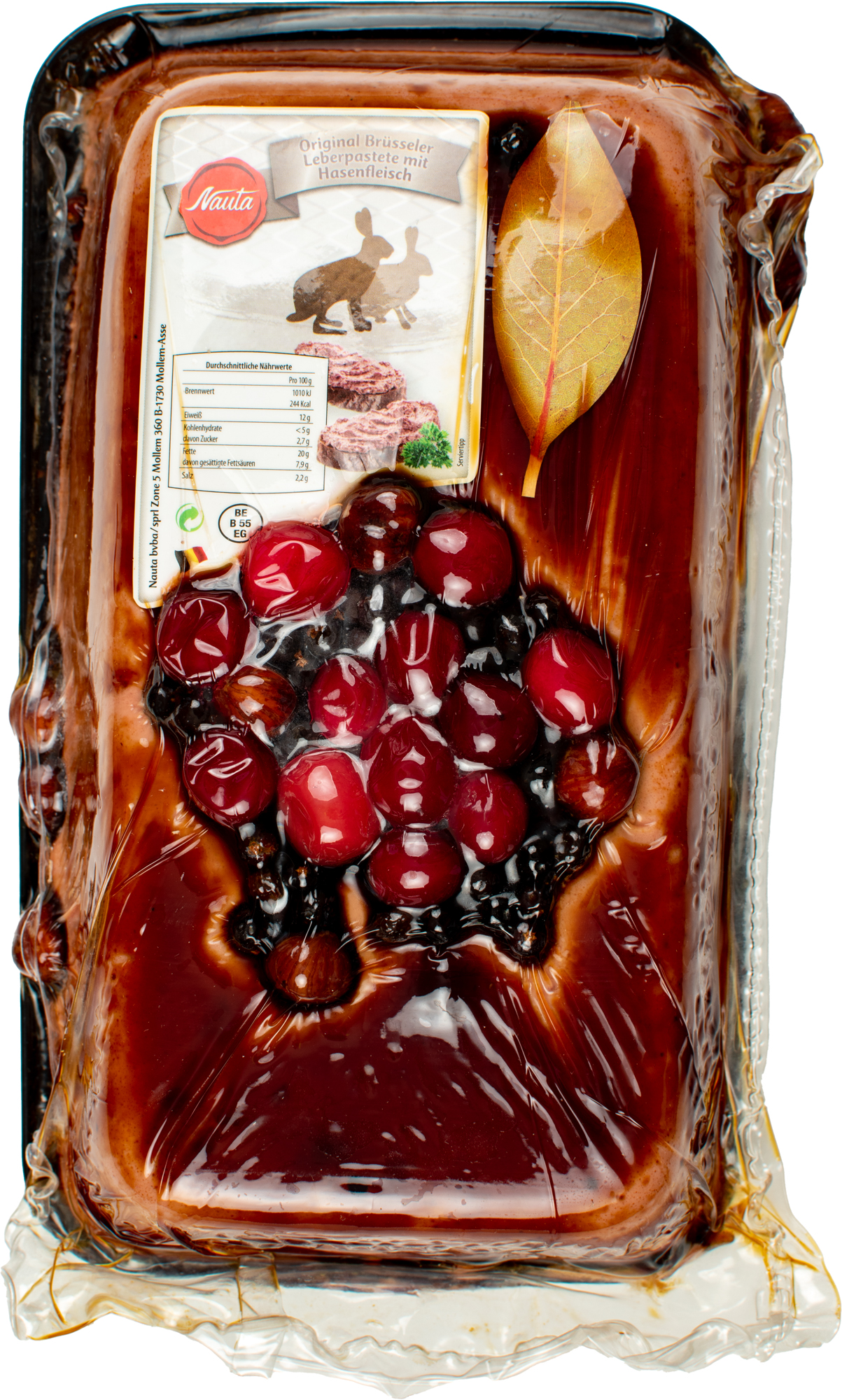 Ainesosat: Sianmaksa 25,4%, sianliha 25%, jäniksenliha 15%, MAITO, silava 7,3%, vesi, KANANMUNA, sipuli, suola, VEHNÄtärkkelys, hunaja, punaviini 1%, rypälesokeri, yrttimausteseos (SELLERI, SINAPPI), säilöntäaineet: E262, E250; stabilointiaineet: E450, E451; ravintokuitu, arominvahvenne: E621, hapettumisenestoaineet: E301, E331, E300; HERAjauhe (MAITO), aromi, hiivauute. Koristeet: liivate, katajanmarja, karpalo, HASSELPÄHKINÄ, keinotekoinen laakerinlehti. Voimakassuolainen.