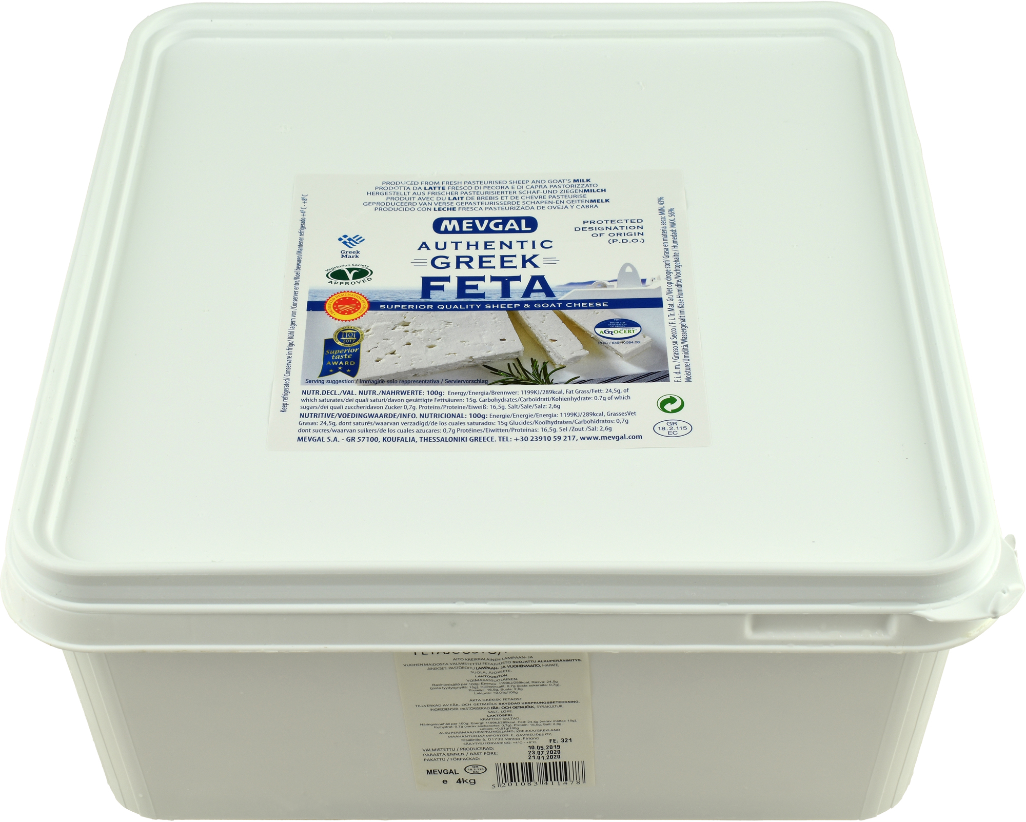 Perinteinen kreikkalainen fetajuusto on valmistettu lampaan- ja vuohenmaidosta. Mevgal on ensimmäinen fetajuusto Suomen markkinoilla ja se on kuulunut kauppojen valikoimiin keskeytyksettä yli kaksikymmentä vuotta. Juusto sopii mm. salaatteihin ja leivontaan.