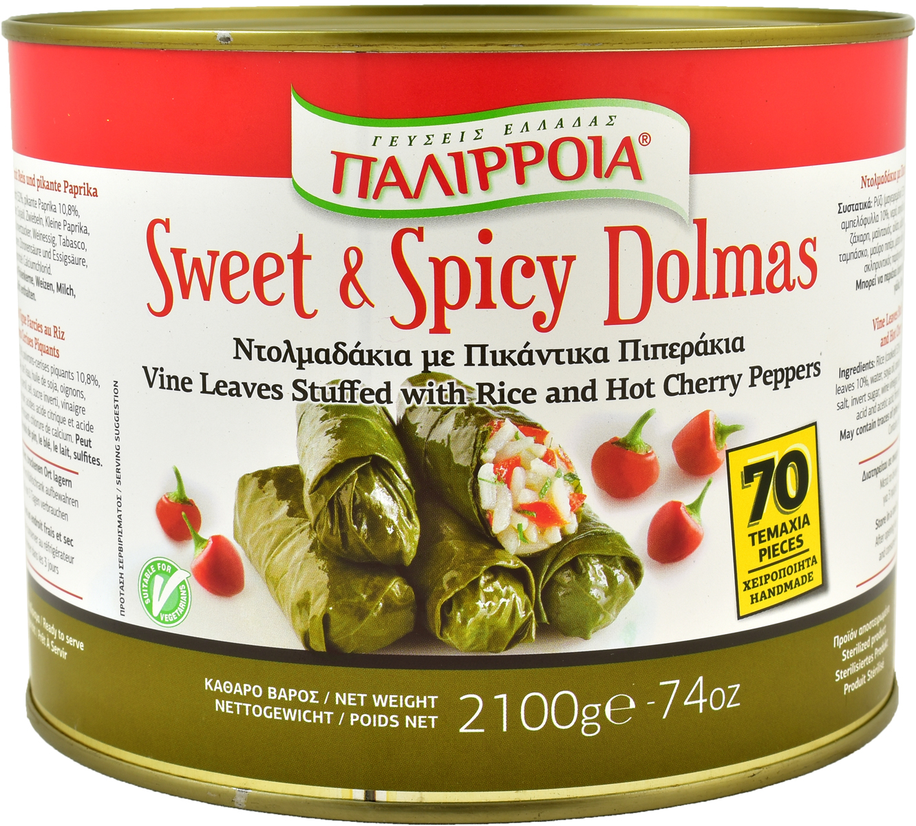 Aidot kreikkalaiset viininlehtikääryleet pikantin makealla chilipaprikalla maustettuna. Nauti sellaisenaan tai dippaa tzatzikiin. Pakkaus sisältää 70 käsintehtyä viininlehtikäärylettä.